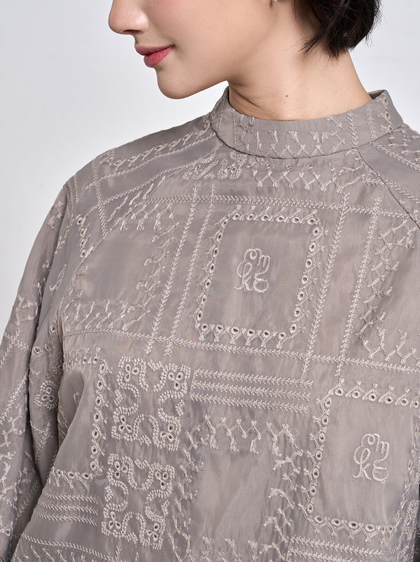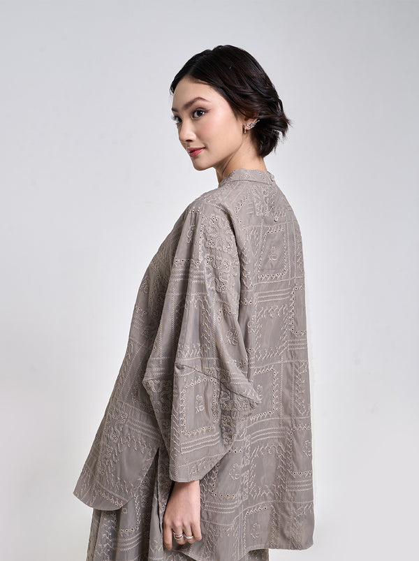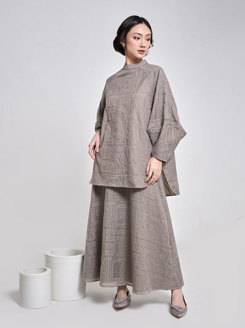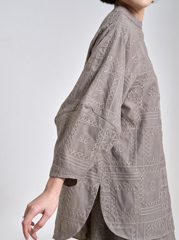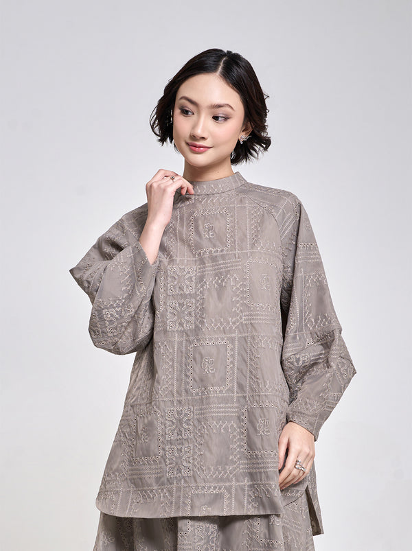 The freedom of Raya embodied in Aria top. Rich with Kami. embroideries, the oversized cutting finished with slits and puffy sleeves for comfort and style.