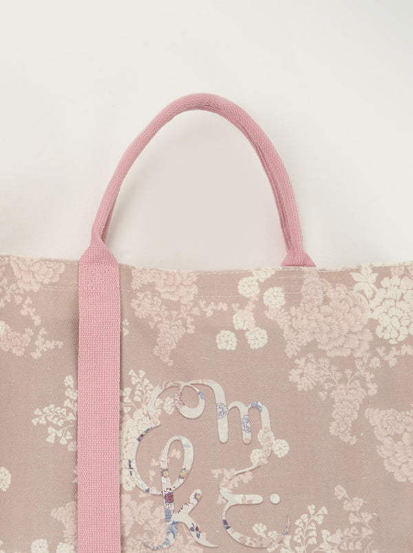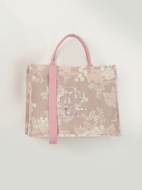 A spacious, water resistant tote bag with Athemina ornate florals over soft color.