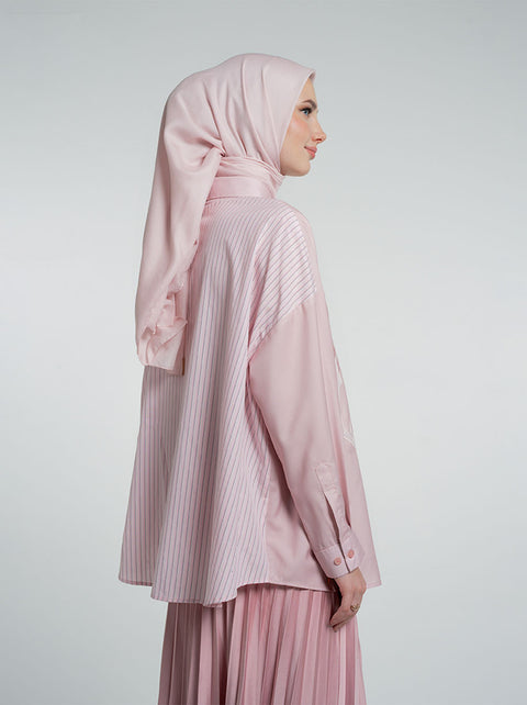 Bria Top adalah kemeja drop-shoulder kasual yang menampilkan lengan menggembung, pattern garis di bagian belakang, dan patch bunga khas Petally di bagian depan.