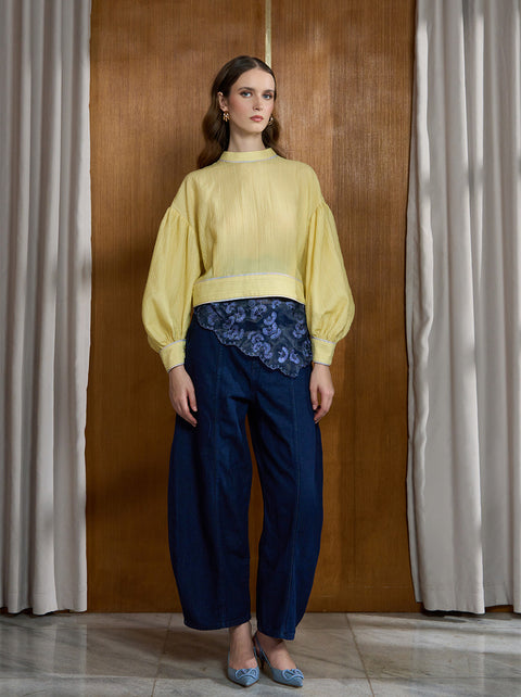 Buat statement dengan permainan volume, model cropped dan warna berani Carin top. Bahannya yang ringan memberi dimensi pada outfit dengan sentuhan tekstur dan warna kontras.