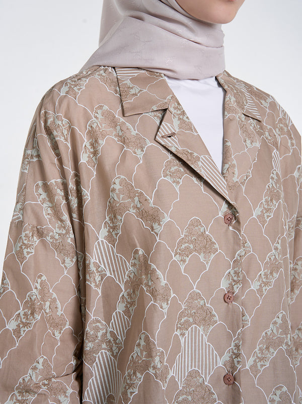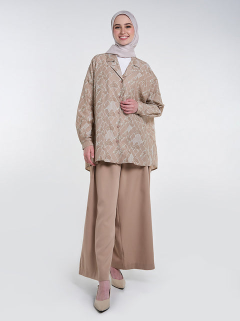 The Carina Top is an instrument of understated elegance with its drop-shoulder design. It also features classic sleeves and cuffs.