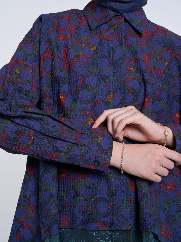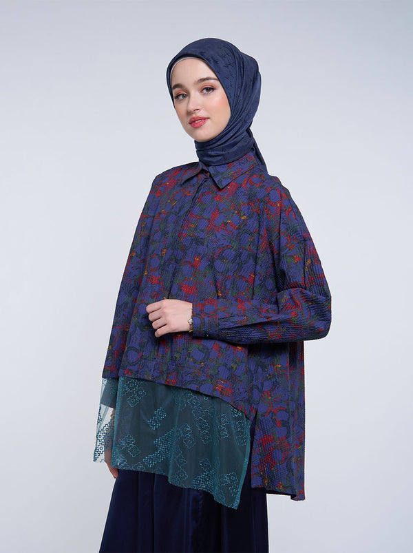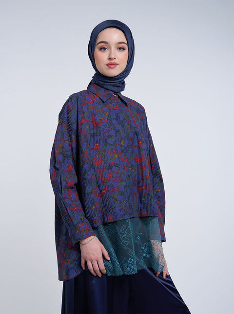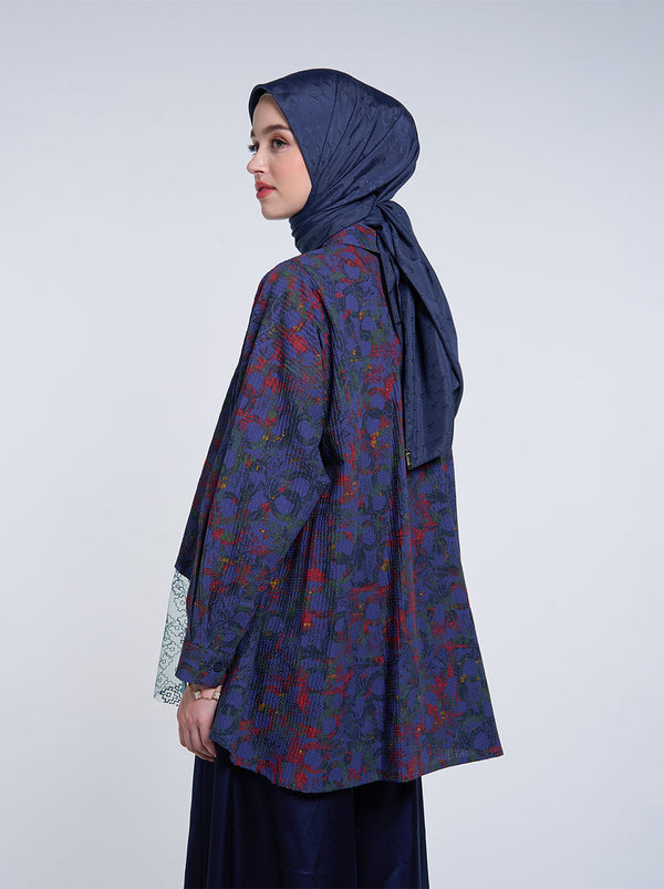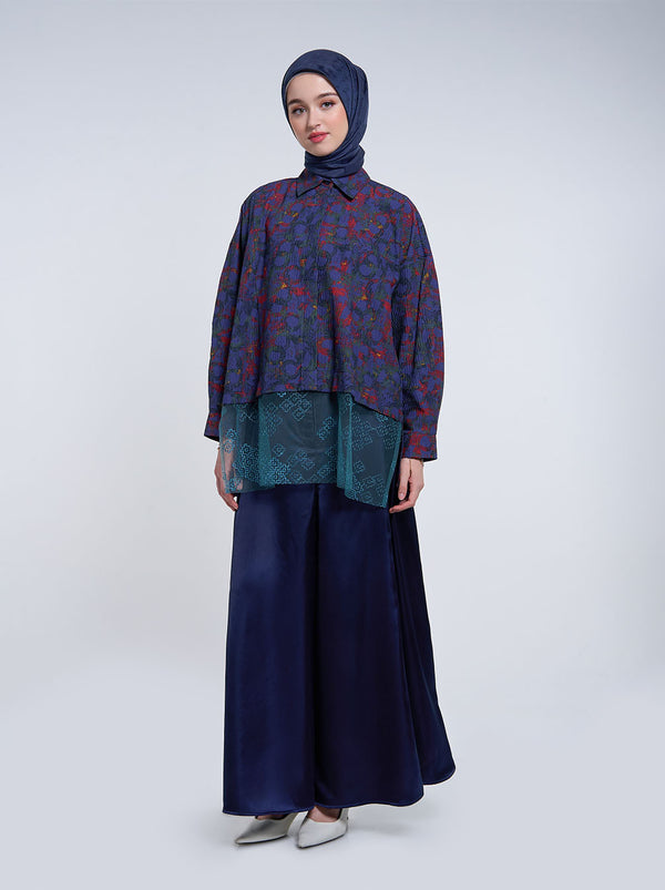 Kemeja berdesainkan cut-and-sew dengan drop-shoulder dan detail renda yang manis pada bagian depan. Potongan ini dengan mudah memadukan kenyamanan kasual dengan siluet oversized dan sentuhan feminin dari renda.