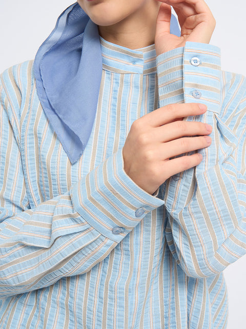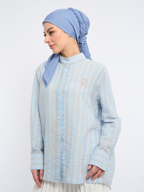 The Diyah Top is your go-to textured polycotton shirt, designed to be ready to wear without ironing! It features a high collar and drop-shoulder sleeves and is available in three stylish colors.