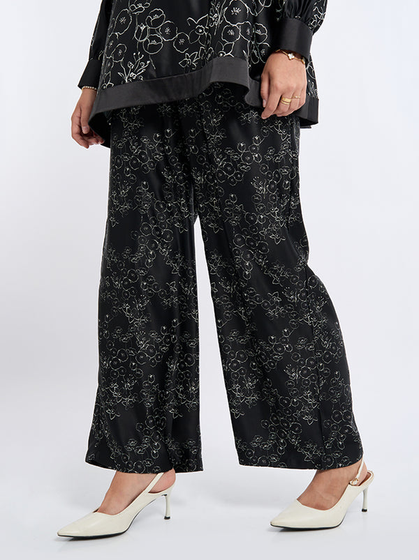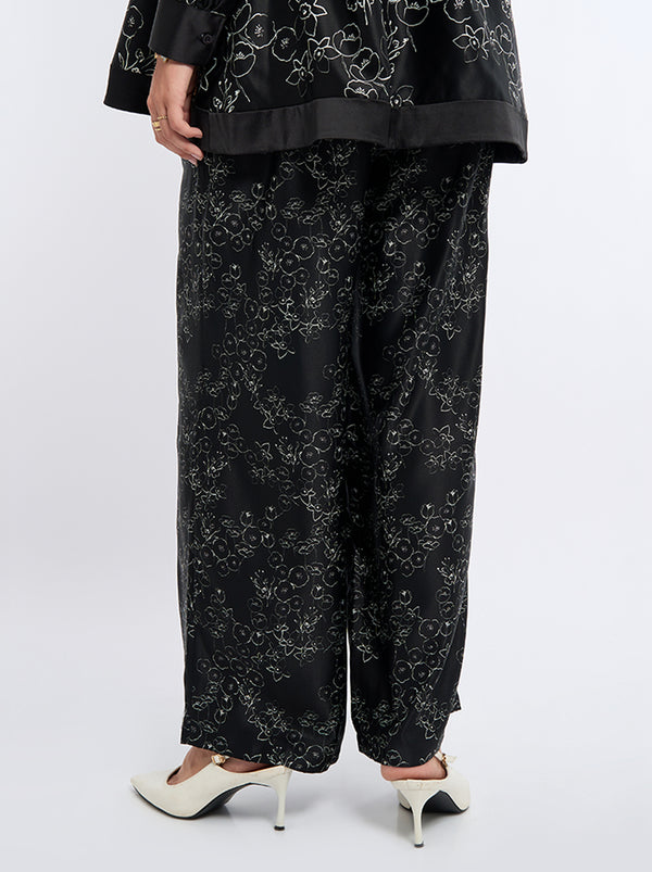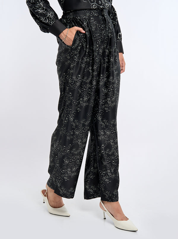 Diyan Pants are a straight-cut pants crafted from polyester material that offer a sleek fit. They feature an elastic waist for ease of wear, a captivating Kalli pattern, and convenient side pockets.