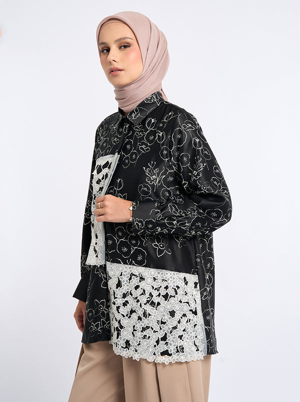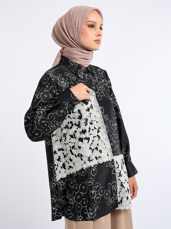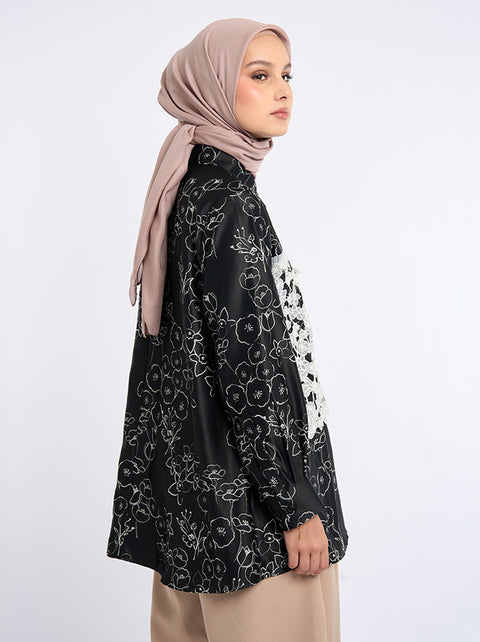 Kemeja polyester ini dibuat dengan detail untuk bagian depan yang unik. Felora Top menampilkan patch bordir dengan pola Kalli yang khas untuk menambahkan tekstur.