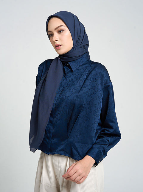 FINE VOILE SCARF PLAIN NAVY BLUE