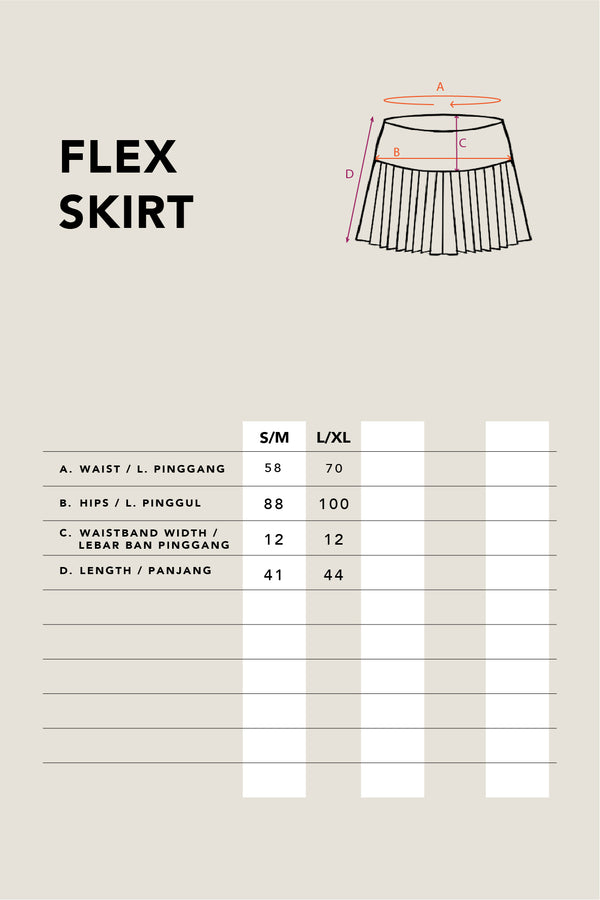 Flex skirt cocok untuk outfit tenis, atau pelengkap legging olahraga. Hadir dengan inner celana dan karet pinggang yang nyaman, dalam desain lipit yang cantik.