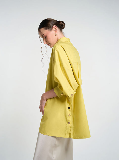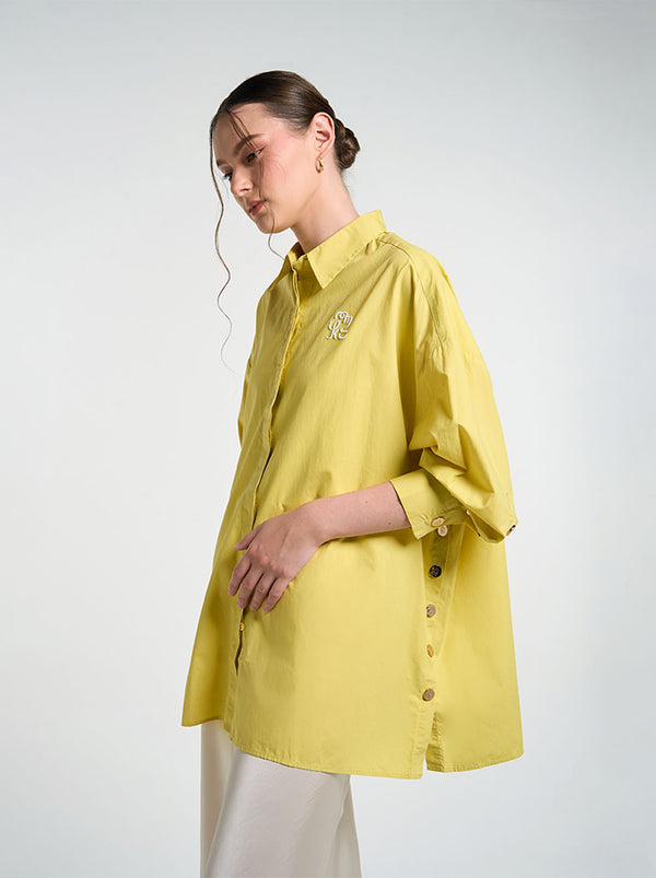Gale Embroidery Top tampil menawan dengan warna-warna cerah dan bordir Kami Monocurve yang artistik di bagian depan, memberikan sentuhan elegan. Detail kancing klip pada belahan samping menambah kesan modern, menjadikannya pilihan yang berani dan stylish untuk berbagai kesempatan.