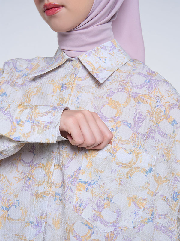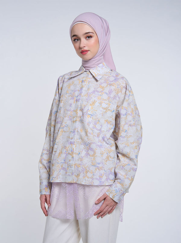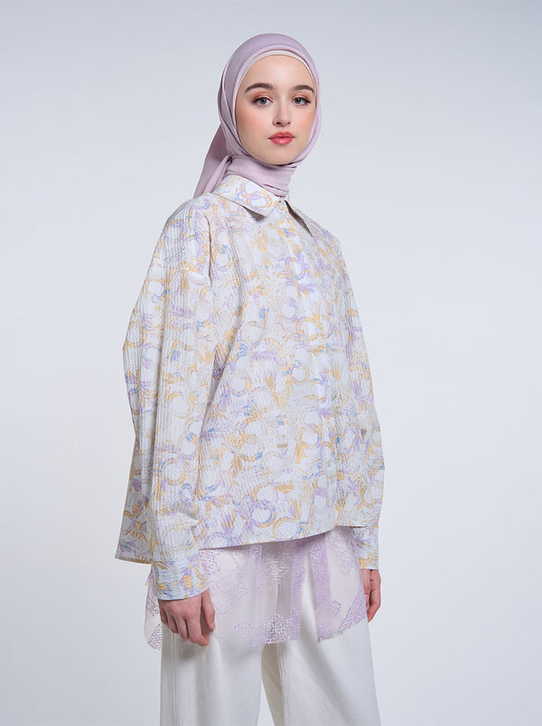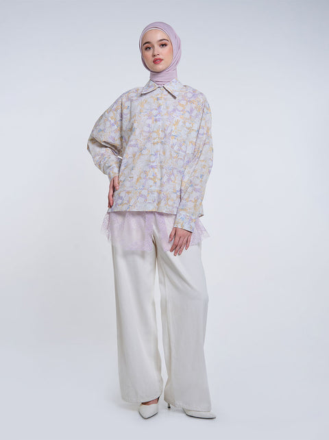 Kemeja oversize dengan lengan drop-shoulder. Dilengkapi dengan saku depan yang fungsional dan layer renda yang dapat dilepas-pasang, sempurna untuk kamu yang ingin tampil lebih menonjol.