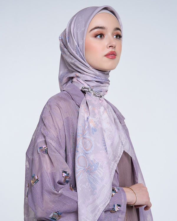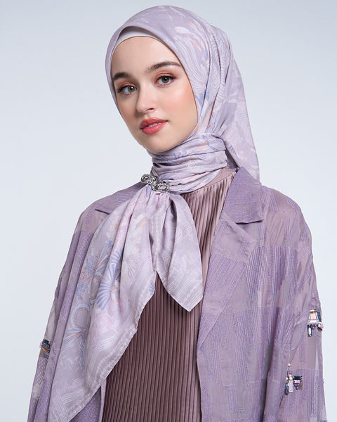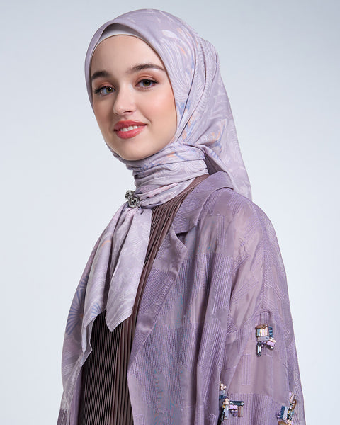 Signature scarf yang terbuat dari bahan airy voile, menampilkan warna-warni dengan pola elemen oriental, sempurna untuk kamu yang penuh warna dan senang mengekspresikan diri.