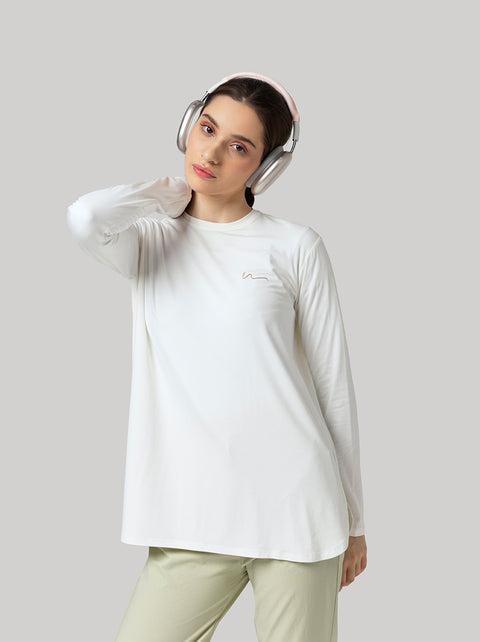 Izzy top brings the ultimate comfort to your workout session with loose fit and sweat-absorbing material mix. Featuring wavy side slits and round neckline.
