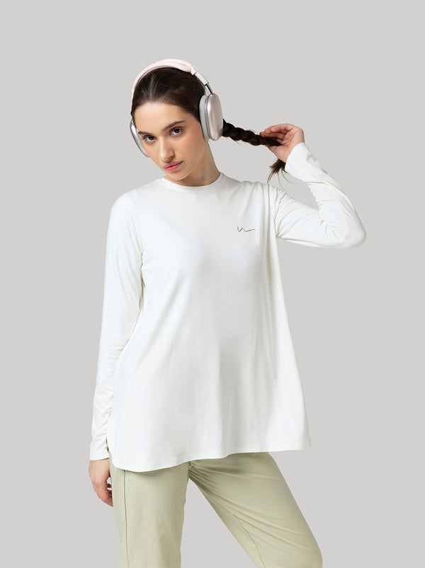 Siluet A-line longgar dan bahan Izzy top yang menyerap keringat membawa kenyamanan maksimal saat berolahraga. Hadir dengan kerah bulat dan belahan sisi.
