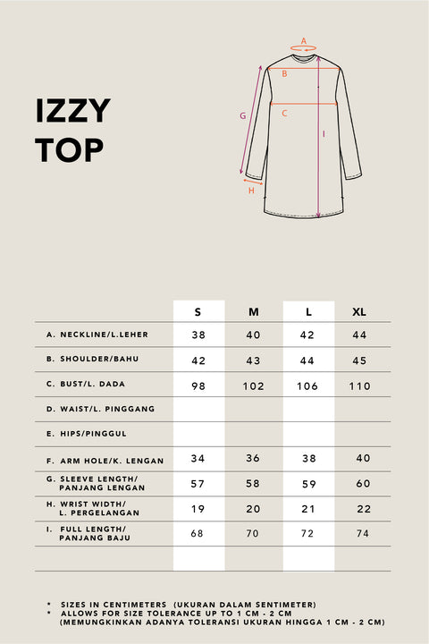 - Dibuat menggunakan bahan 95% rayon dan 5% spandex