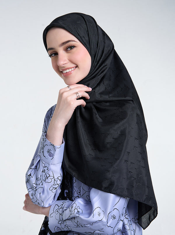 AIRY JACQUARD VOILE SCARF PLAIN BLACK