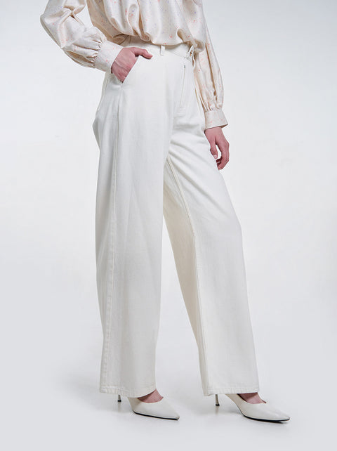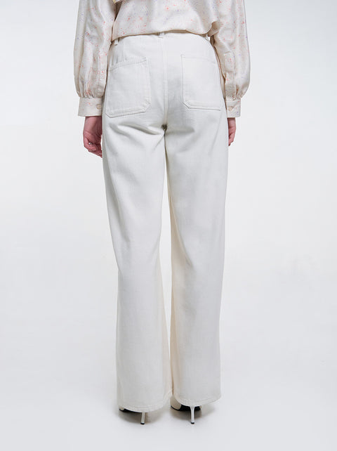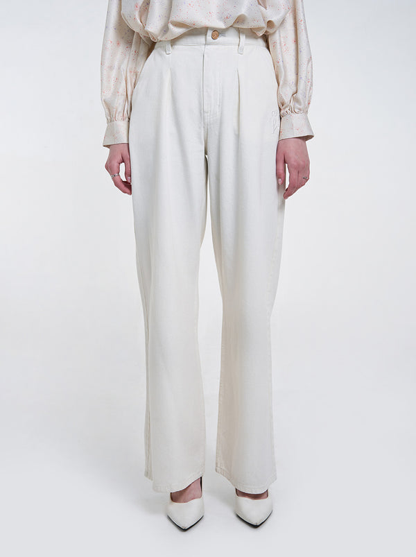 Straight-cut jeans made of cotton. It features belt loops, engraved button, front coin pocket, back pockets, embroidered Kami signature logo, and pleated details for added style!