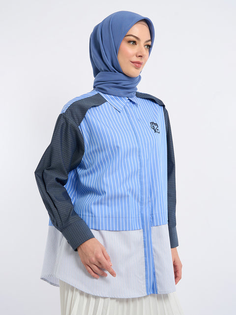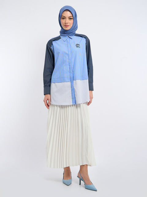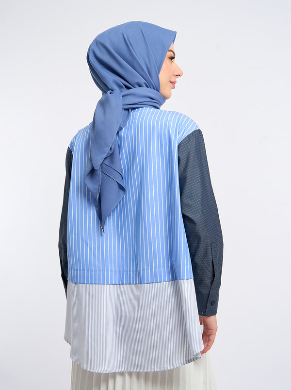 Jeyya Top menampilkan detail bahu yang unik, dilengkapi dengan detail potongan dan jahitan pada bagian tubuh. Tingkatkan pernyataan feminin Anda dengan desain lipatan kotaknya!