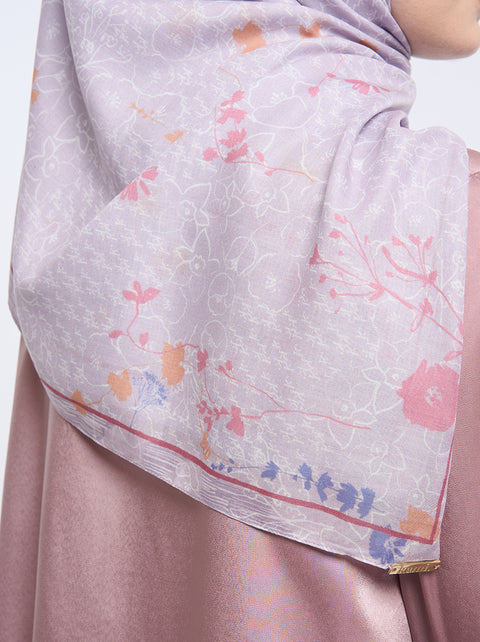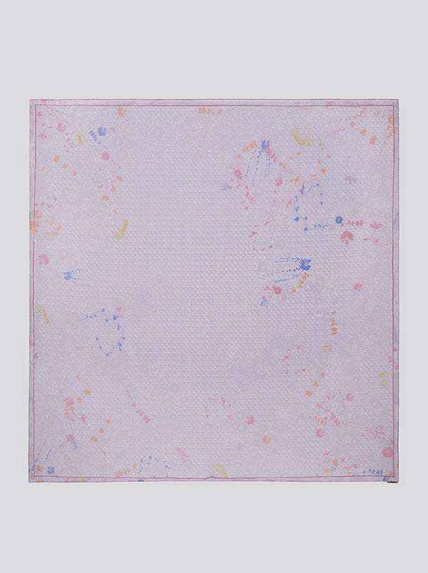 Scarf dengan pola 'K' khas yang dikelilingi oleh bunga bergayakan seni Jepang. Menampilkan warna cerah yang cocok untuk suasana liburan.