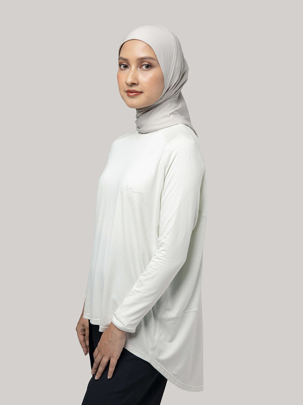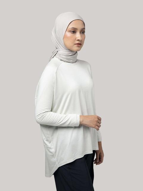Tetap tampil modest saat berolahraga dengan Lave top. Hadir dengan potongan asimetris yang longgar, dan kombinasi bahan yang efektif menyerap keringat.
