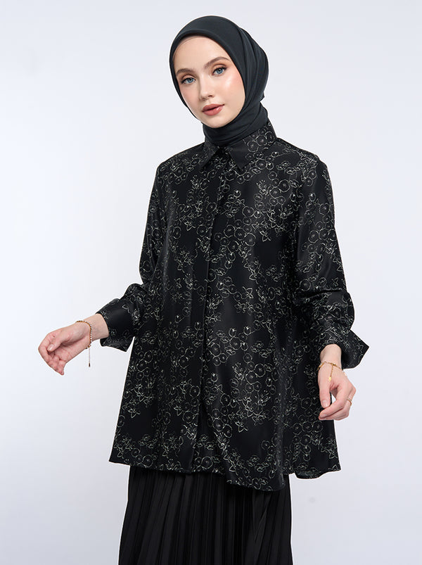 Kemeja poliester ini menampilkan pola minimalis Kalli. Kana Top memiliki potongan lurus dan desain yang nyaman, cocok untuk momen liburanmu.