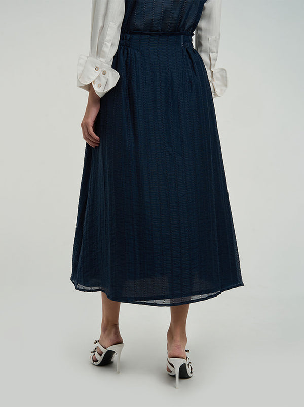 A classic shape with modern details meet on Kanata skirt. Made out of a lightweight textured material, adorned with drawstring and seamless zipper. Step in comfort and confidence thanks to the elastic waistband.