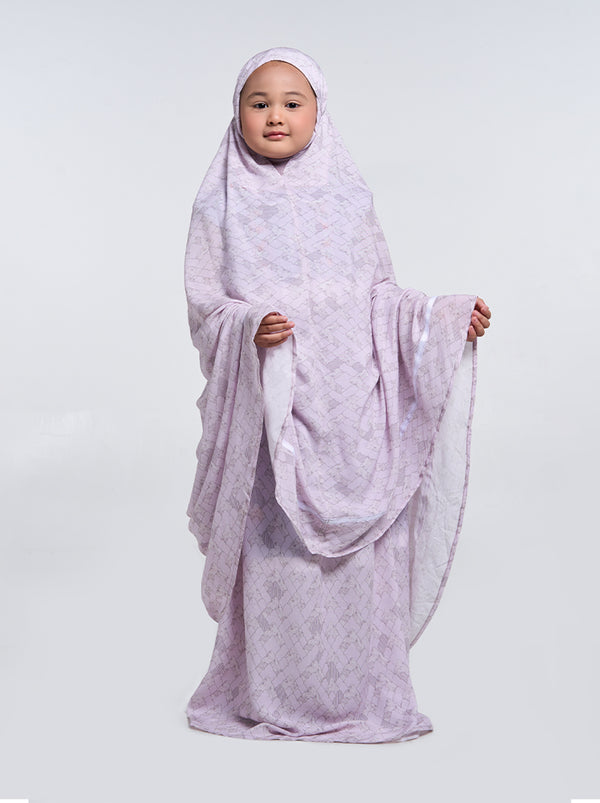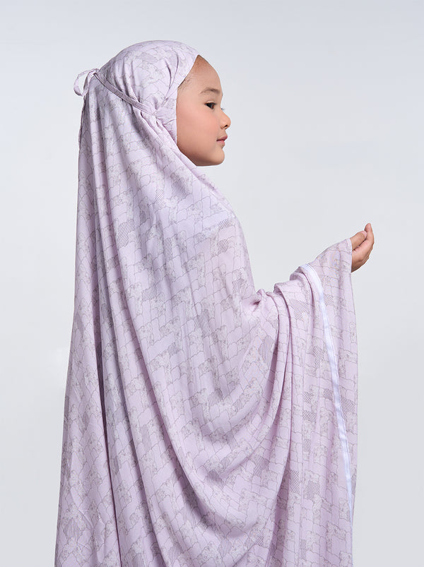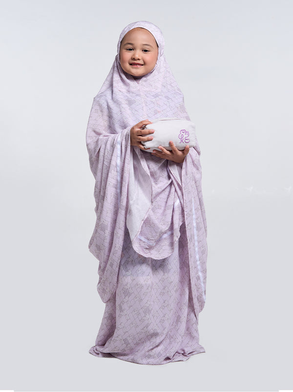 A mini prayer set made for twinning with your little one! The edge is stitched neatly, features an adjustable head strap, and elastic at the chin for a customizable fit.