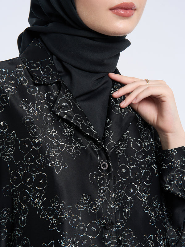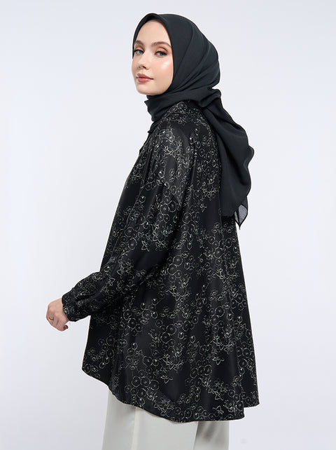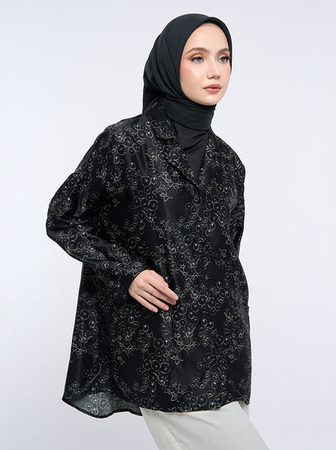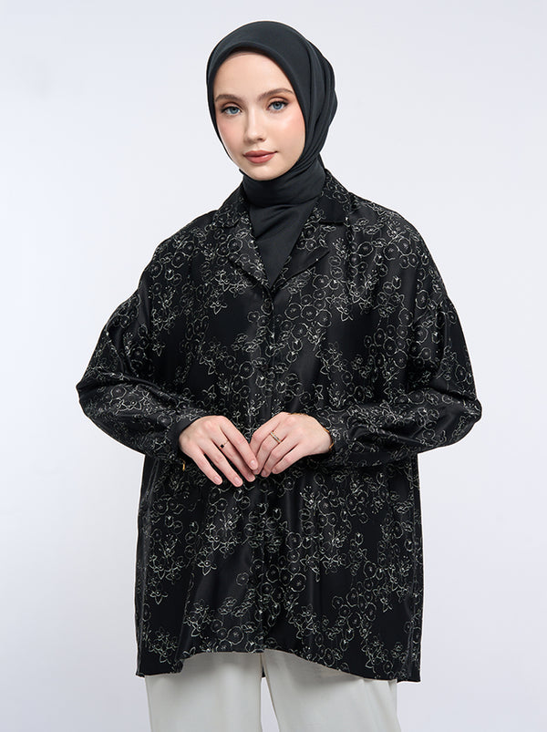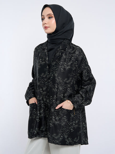 The Kimora Top features drop-shoulder design with two functional front pockets. It showcases non-concealed buttons, classic sleeves, and cuffs, offering casual elegance.