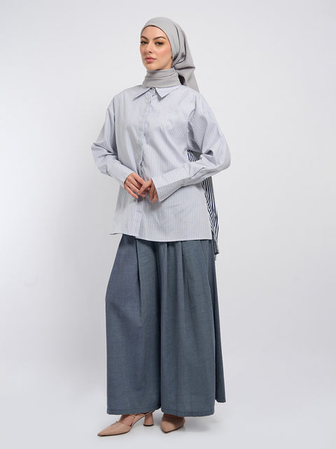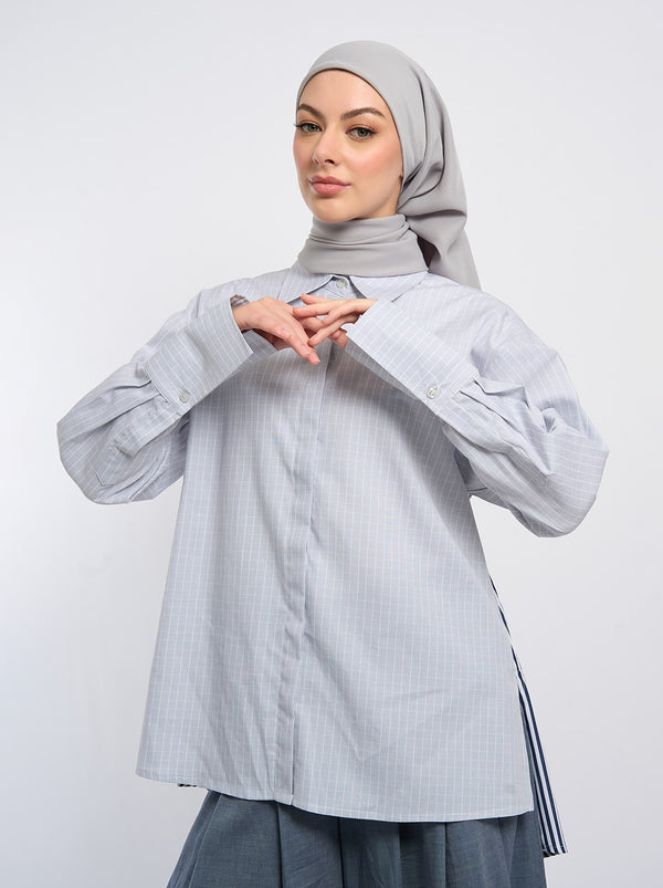 The Kinar Top is your go-to shirt with wide, easy-to-style cuffs. The drop-shoulder cut adds a casual vibe, while the shirt collar maintains a classic look.