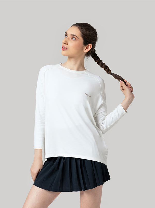 Lave top brings the ultimate coverage to your workout outfit with loose fit and assymmetrical cut. The sweat-absorbing material mix keeps you dry, keeps you going.