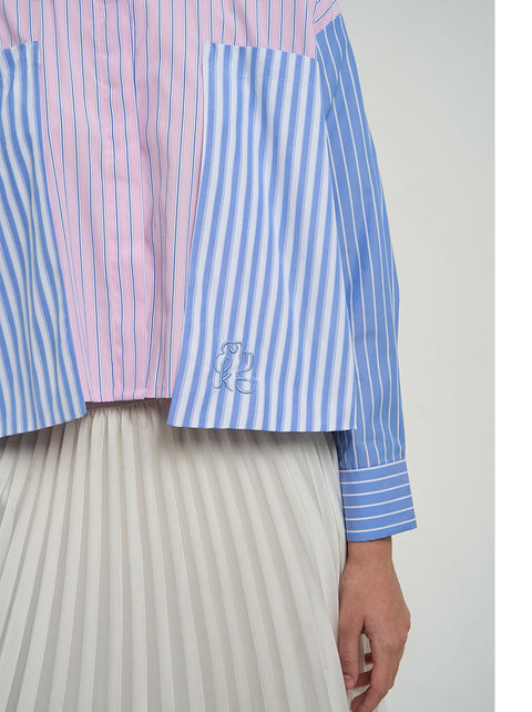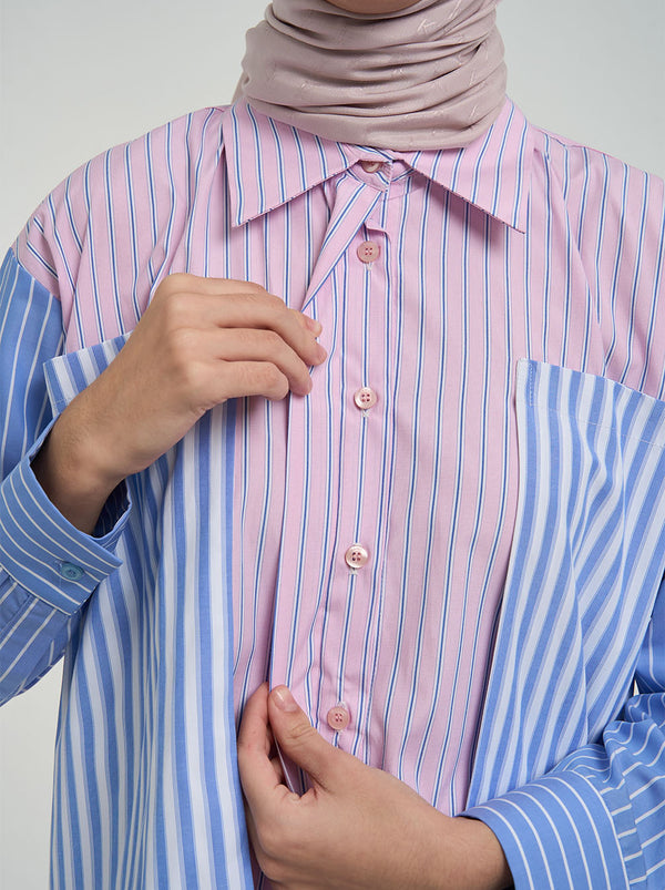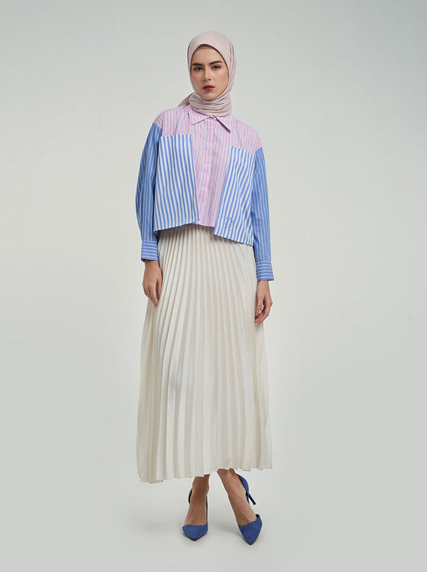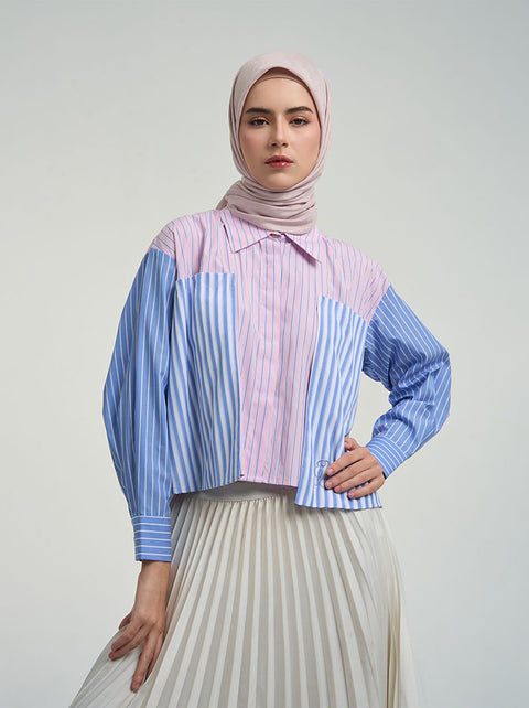 Let your eyes wander over the design and creativity of Liliane Top. The mixed patterns made up by stripe panels create an illusion and modern look. Find the surprise pockets on the sides for easy storing.