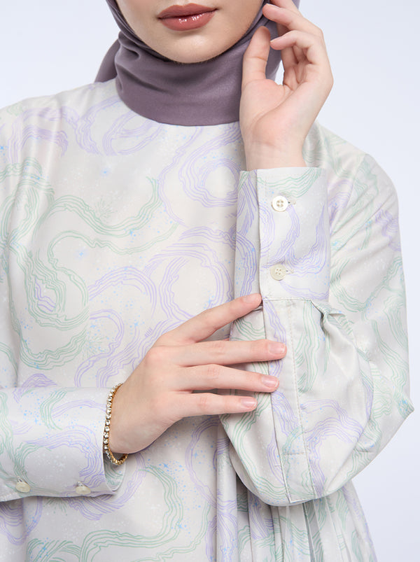 The Mina Dress crafted from a flowy material with distinctive side pleats, adding a twist at every turn.