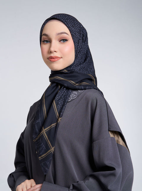 Explore the simplicity and elegance of the Mono Cubic Scarf, adorned with the distinctive Kami Monogram at the edge and an abstract pattern in the center, crafted from airy voile material.