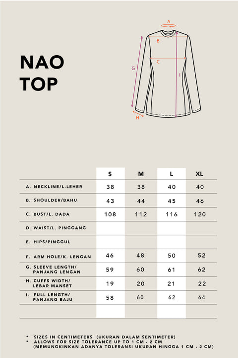 Nao top dengan model lurus dan semi drop shoulder, menjadikannya atasan wajib punya untuk berbagai jenis olahraga.