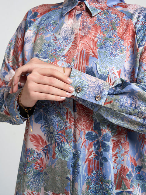 Embrace the ethereal flow of sheer chiffon on the back of this tunic, adding graceful movement to your look. With inner lining for added coverage, feel confident from every angle.