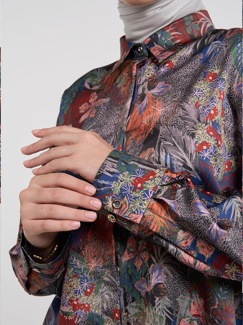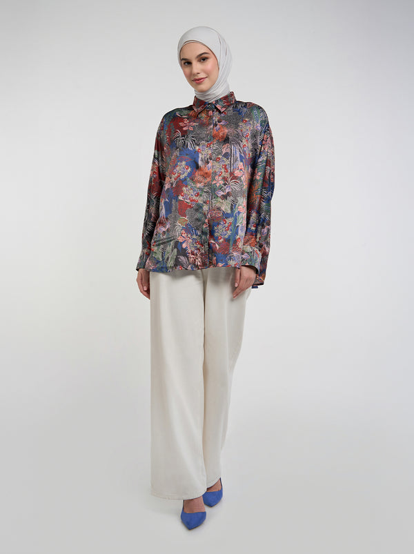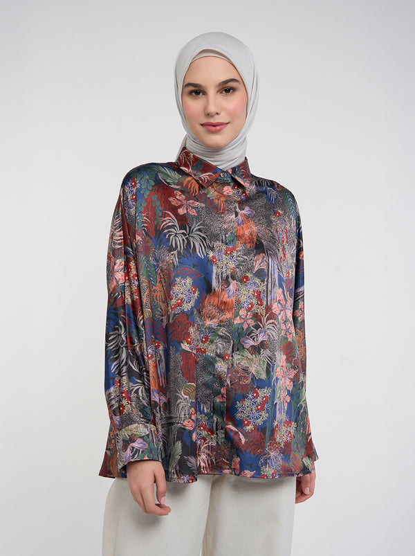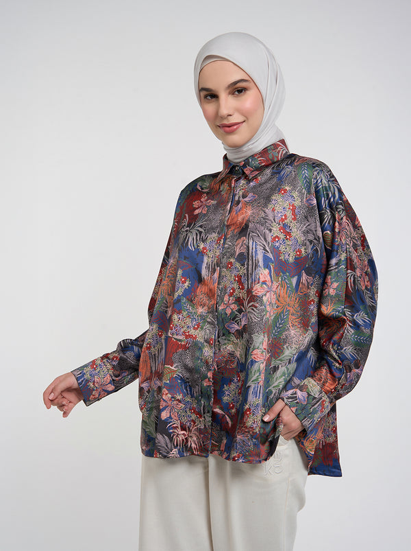 Pilih Rume Top untuk tampilan oversized yang santai, dengan pattern hutan hujan khas Cedarra. Minimalis namun mencolok, kemeja ini adalah perpaduan sempurna antara kenyamanan dan gaya.