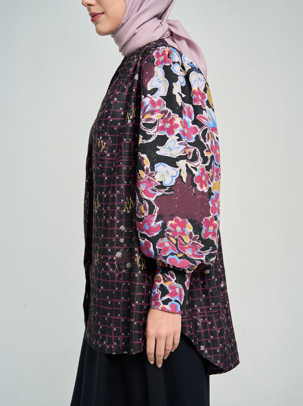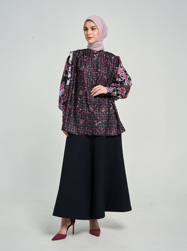 SARA PUFF SLEEVE TOP BLACK BURGUNDY