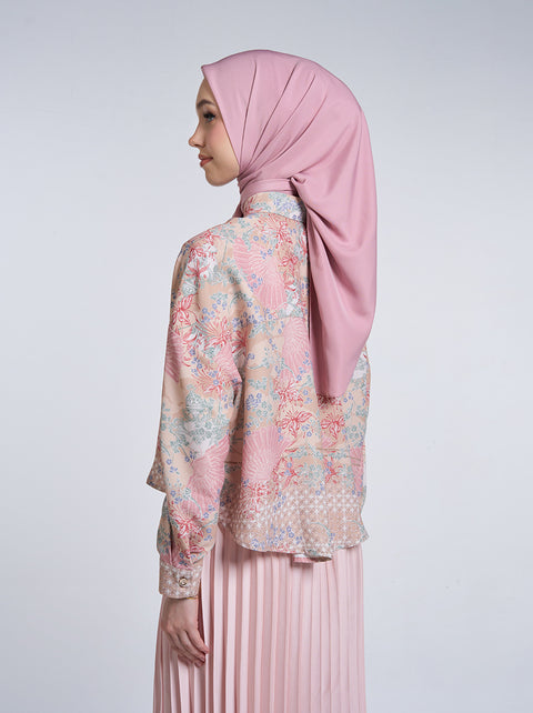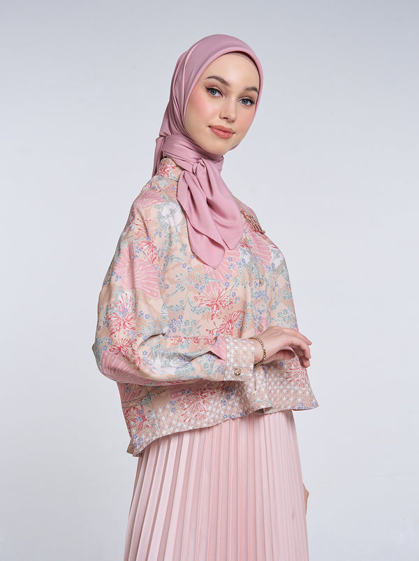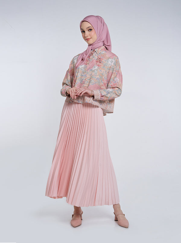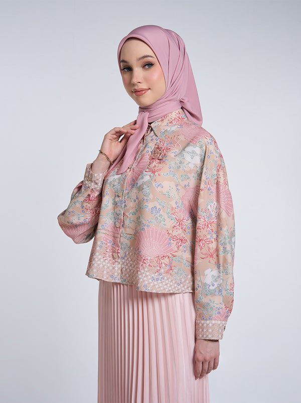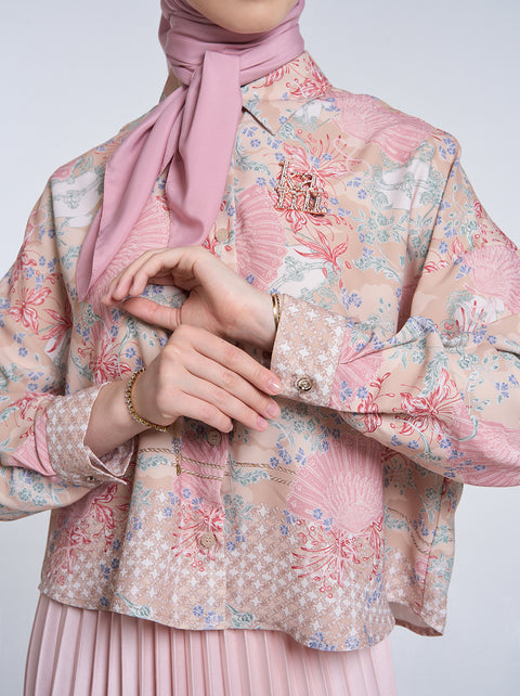 Sashi Top adalah kemeja crop dengan drop-shoulder berbahan polyester. Dilengkapi dengan kerah kemeja serbaguna, memberikan sentuhan modern pada pattern yang klasik.