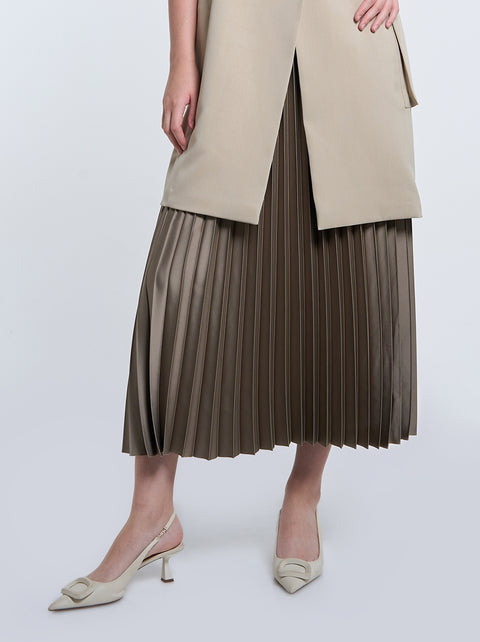 SATIN PLEATED SKIRT PLAIN BROWN TEA
