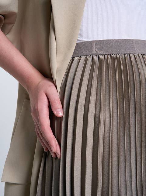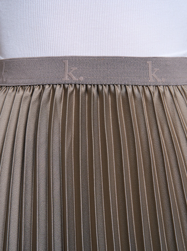 Pleats skirt made of satin with elastic waistband and embossed K. signature logo.
