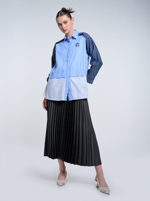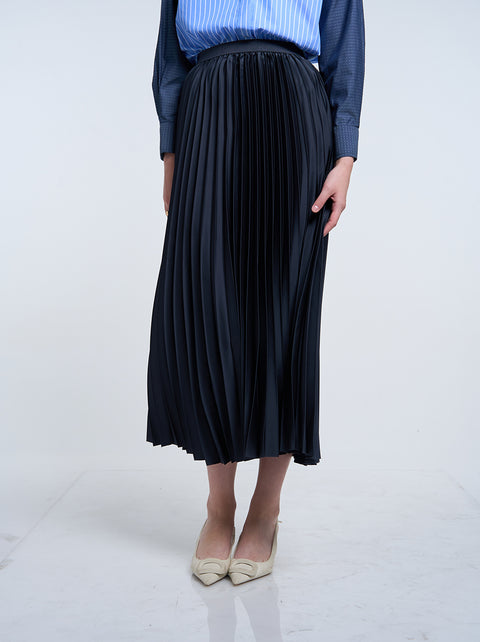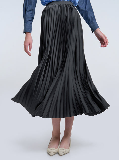 SATIN PLEATED SKIRT PLAIN CHARCOAL