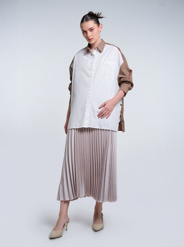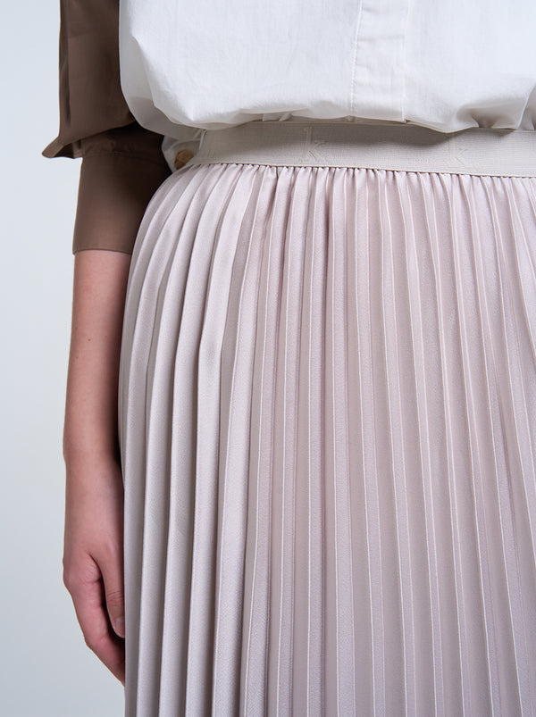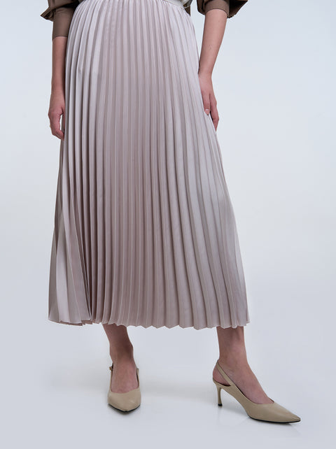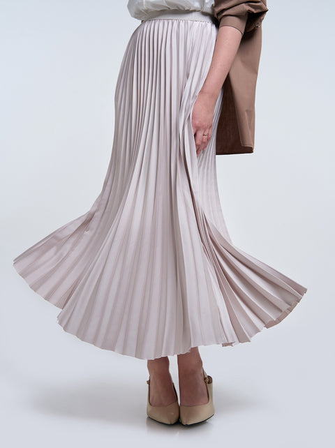 SATIN PLEATED SKIRT PLAIN DUSTY IVORY