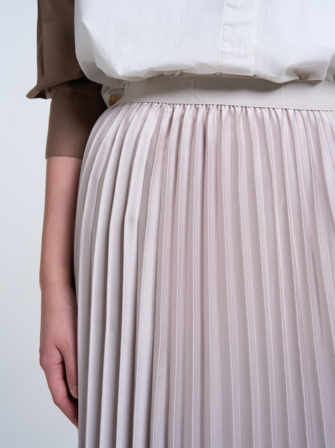 Pleats skirt made of satin with elastic waistband and embossed K. signature logo.