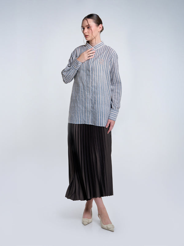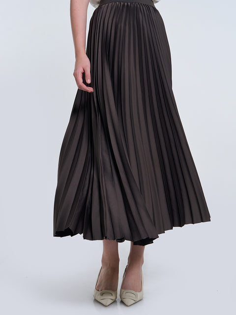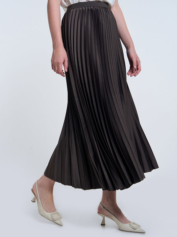 SATIN PLEATED SKIRT PLAIN PEBBLE