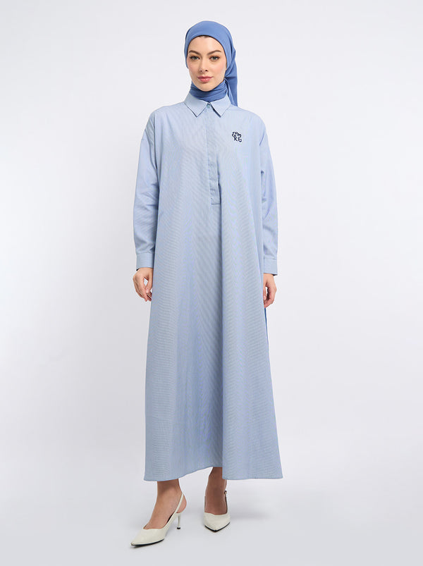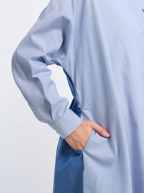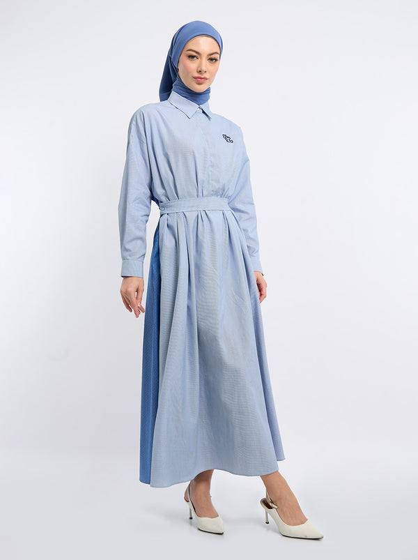 Sheva Dress adalah tunik panjang dengan detail kerut elastis di bagian belakang untuk efek ramping, dilengkapi dengan tali pinggang yang dapat dilepas pasang.