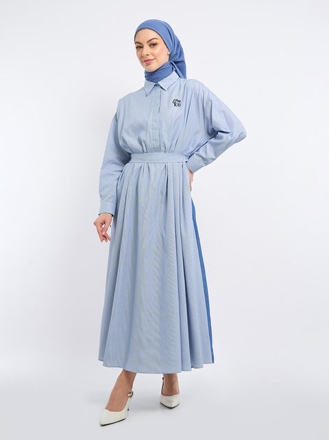 The Sheva Dress features a long design with stretchy ruched details at the back for a slim effect, completed with a detachable belt.