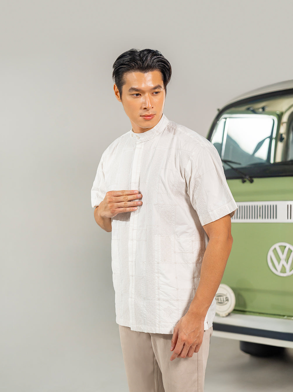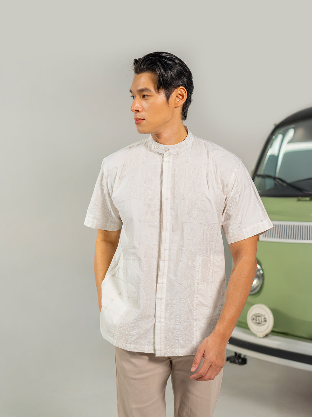 Crafted in cotton with cross-stitch panels and Kami’s signature embroidery, Shiraz Koko is designed with relaxed short sleeves and a unique double-button round collar for an effortlessly playful finish.