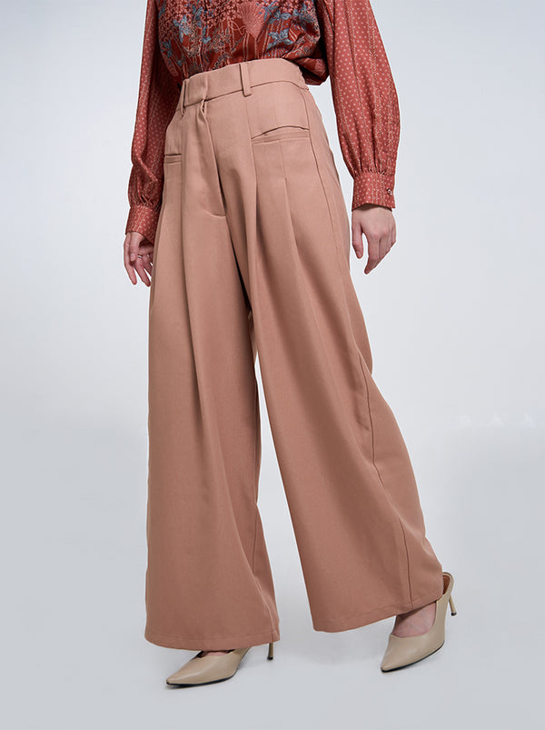 Meet Wuri Pants, a stylish pants feature pleat details on the front, functional front and back pockets, wide belt loops, a straight cut, and an elastic waistband for a customizable fit.