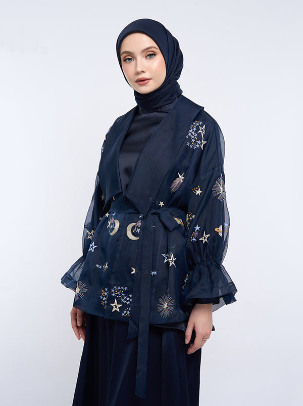 Xena Outer menampilkan potongan bahu rendah dan lengan poet yang mengembang dengan bordir bermotifkan bintang. Outer ini dilengkapi dengan belt yang dapat disesuaikan untuk penampilan yang lebih berbeda!