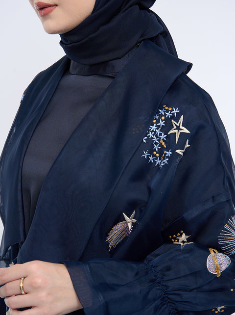 Xena Outer features drop shoulders and puffy poet sleeves adorned with fully embroidered star patterns, complemented by a detachable belt for a striking statement!