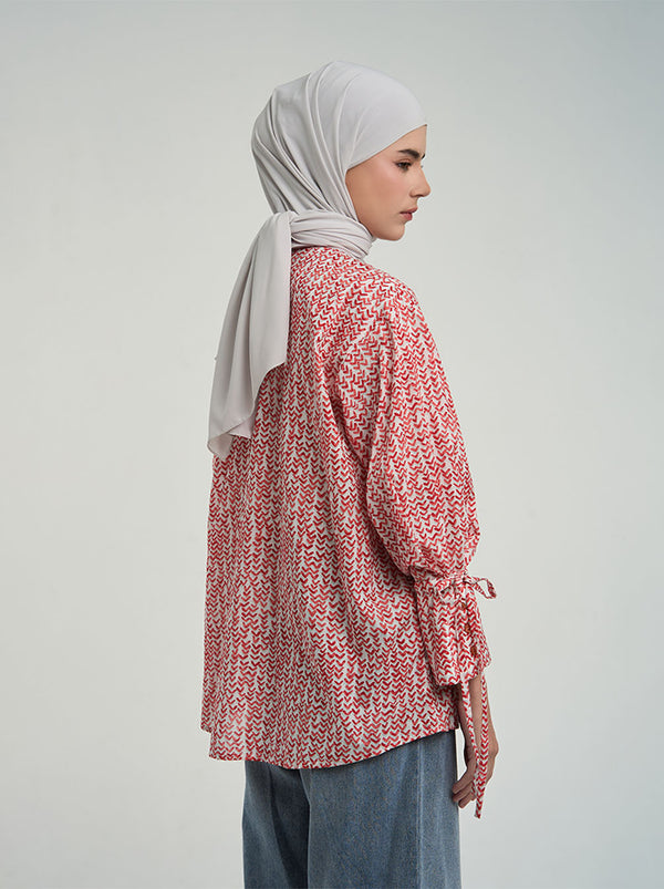 Feminine and intricate sleeve details will make you fall in love with Yanza Top. Find the adorable ties at the end of the puffy sleeves, topped with the distinct high cuff. Featuring Kami. monocurve embroidery on the chest.