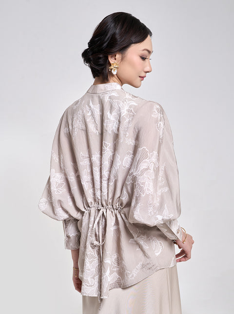 Zadia top features the essence of Aristaya collection: timeless cutting and design elements. The wide cuffs add structure, while the adjustable drawstring at the back provided versatility.
